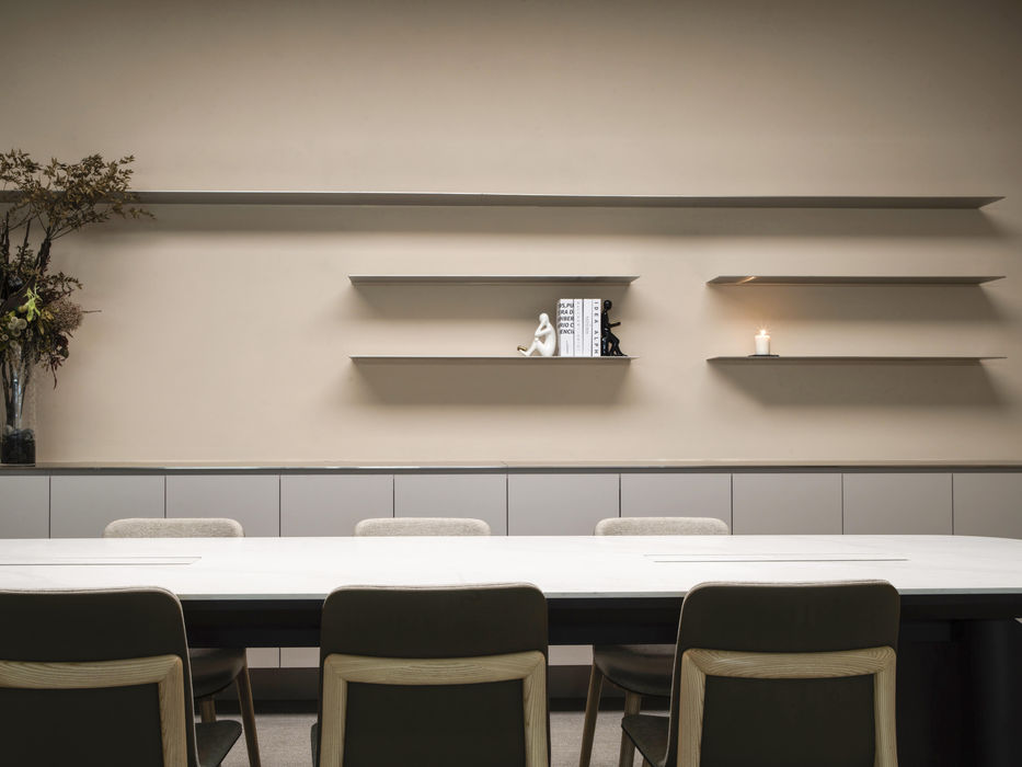 This office is rooted in the concepts of "harmony" (和) and "unity" (合), striving to create a workspace that is both secluded and open. Designed by its own user—a designer familiar with the creative process—it balances private zones for deep thought with inviting open areas for idea collisions. With careful spatial planning using greenery, glass, and upscale soft furnishings, it seamlessly integrates personal and communal spaces.
